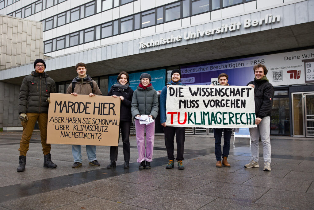 Student*innen von Fridays for Future TU Berlin vor dem Hauptgebäude der TU Berlin.